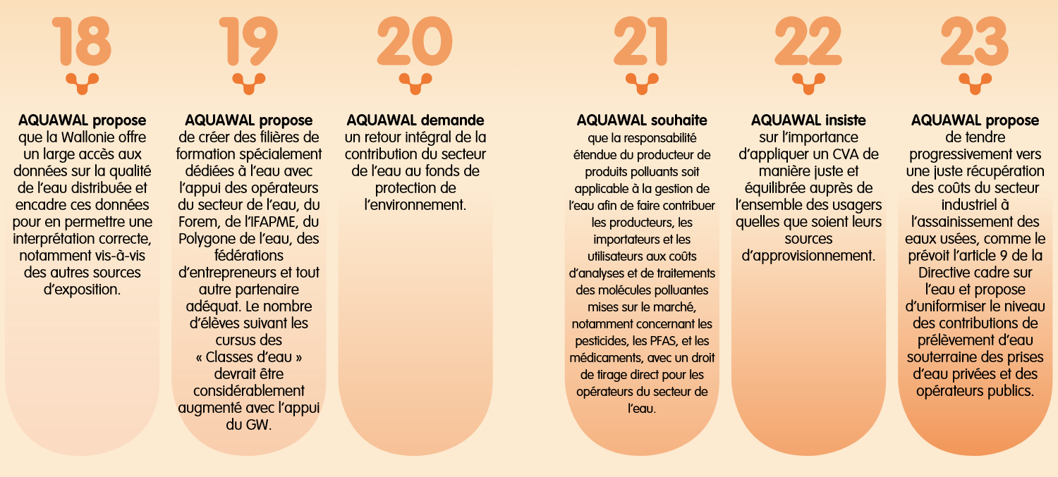 A travers son mémorandum, AQUAWAL met en avant les principaux enjeux du secteur de l'eau et propose des leviers d'actions au sein des différentes politiques.